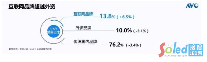 對于市場格局的判斷,我們奧維傾向于認(rèn)為未來的彩電市場的大盤式增長正在向競爭性增長來進(jìn)行分化,我們以互聯(lián)網(wǎng)品牌為例,1到4月份已經(jīng)超過了外資品牌,達(dá)到了13.8%的市場份額。之前我們講的中、日、韓三國殺的局面將逐漸的被傳統(tǒng)品牌和互聯(lián)網(wǎng)品牌的雙雄戰(zhàn)來代替。我們認(rèn)為在今年品牌格局發(fā)生洗牌將會是大概率事件,創(chuàng)維、海信領(lǐng)袖品牌大者很大、強(qiáng)者很強(qiáng),像小的二線品牌可能會放棄抵抗,比較體面的離場。