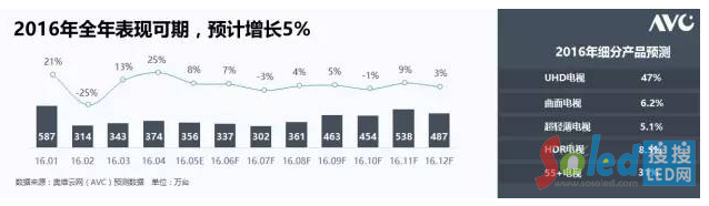 最后,我們按照慣例還是來對于全年進(jìn)行一個(gè)預(yù)測,2016年,我們認(rèn)為中國彩電市場的銷量會同比增長五個(gè)百分點(diǎn),剛剛對于前五個(gè)月份的表現(xiàn),我們做了一個(gè)更新。產(chǎn)品的升級仍舊是主旋律,超高清的電視在未來占到47%的市場份額,曲面電視占到6.2%,超輕薄占到5.1%,HDR占到8.5%,55寸以上電視占到31%,以上是我們對于中國大屏顯示的現(xiàn)狀的剖析。