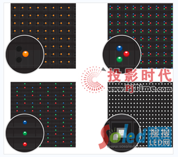 直插式LED通過(guò)引線連接電路板,位置更高。每個(gè)LED燈珠是紅、綠、藍(lán)單色燈珠。