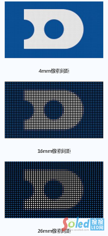 較大的字符將擁有較長(zhǎng)的觀看距離,小的則更短。像素間距也在室內(nèi)和室外應(yīng)用間變化。