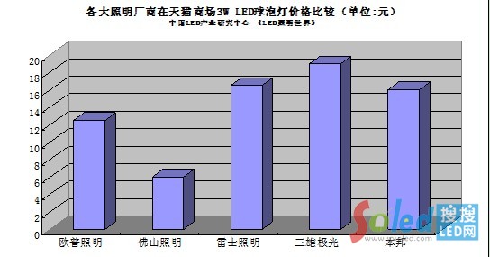 許多的新型LED照明企業(yè)從去年就開始了價(jià)格戰(zhàn),比如長(zhǎng)方照明、木林森以及勤上光電等。此次眾多的傳統(tǒng)照明公司紛紛切入這一領(lǐng)域,如雷士照明、佛山照明這類傳統(tǒng)企業(yè)顯然不愿拱手將市場(chǎng)送給對(duì)手,他們祭出了價(jià)格屠刀,以維持自己在LED照明產(chǎn)業(yè)中的相對(duì)優(yōu)勢(shì)。行業(yè)的競(jìng)爭(zhēng)格局犬牙交錯(cuò),短兵相接不可避免。傳統(tǒng)照明廠商在傳統(tǒng)燈具市場(chǎng)多年積累的技術(shù)優(yōu)勢(shì)和成本控制經(jīng)驗(yàn),現(xiàn)在佛山照明開發(fā)生產(chǎn)的LED終端產(chǎn)品價(jià)格水平已能接近節(jié)能燈具,其中5W的LED燈泡的成本已下降到10元以內(nèi),該成本與性能相當(dāng)?shù)?0W節(jié)能燈非常接近,已具有引發(fā)替換效應(yīng)的競(jìng)爭(zhēng)能力。