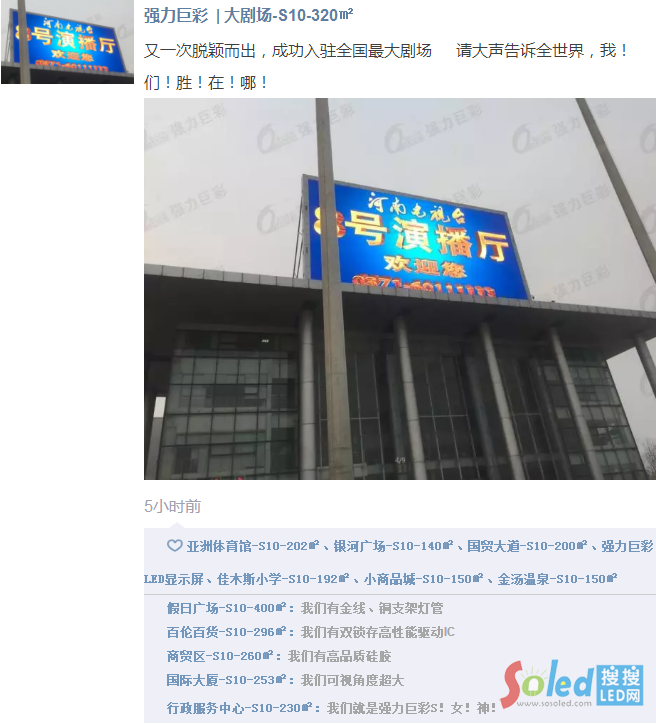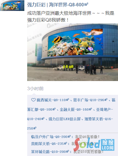 正是金九銀十,強力巨彩LED戶外大屏迎著秋收喜悅一面面拔地而起,全國各地到處遍布強力巨彩LED戶外大屏魅力綻放的靚麗身影,分分鐘刷屏朋友圈。不禁要想,假如這些強力巨彩戶外大屏也有自己的朋友圈,我猜他們會是醬紫滴!