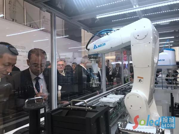 智能制造方面,長達(dá)4米、模擬實(shí)際生產(chǎn)線的“彈性多工智能產(chǎn)線”整合3臺(tái)臺(tái)達(dá)機(jī)器人、智能化監(jiān)控軟體、智能輸送線等尖端技術(shù),讓參觀貴賓能現(xiàn)場(chǎng)體驗(yàn)“智造”的優(yōu)勢(shì)。