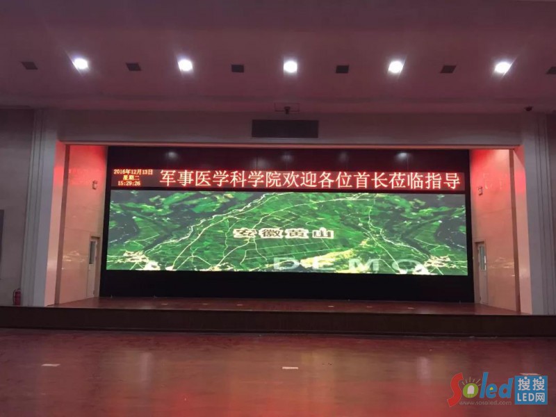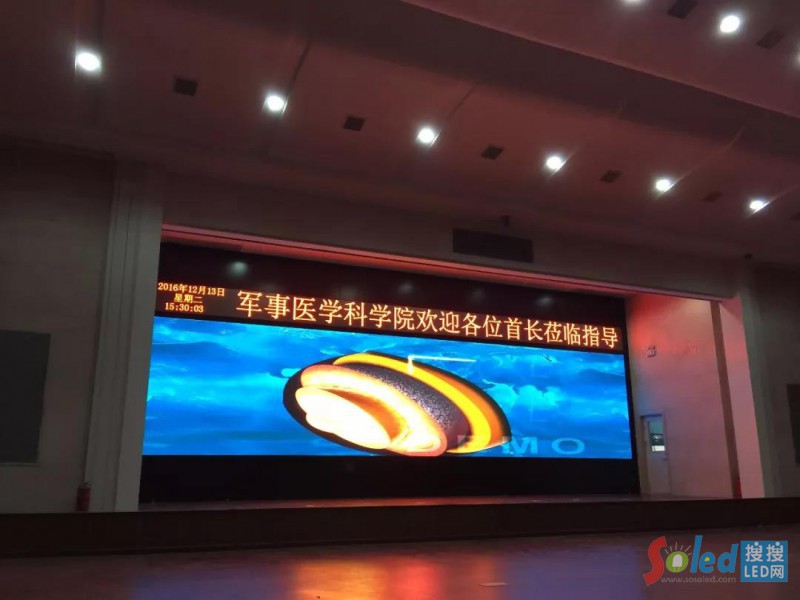軍事科學(xué)院軍事醫(yī)學(xué)研究院會議室大屏幕---由北京彩易達(dá)公司承制的麒麟甲系列小間距顯示屏產(chǎn)品提供內(nèi)容顯示服務(wù)。大會過程中視頻、圖片、報表,集中展示了軍事科學(xué)院的科研成就?吹讲簧俪晒_(dá)到世界先進(jìn)水平,習(xí)主席很高興,勉勵大家再接再厲,再創(chuàng)佳績。