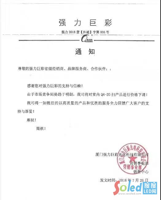 更有甚者,一些大企業(yè),在價格上漲來襲的時候,不但不漲價反而降價,因為這些企業(yè)有足夠的底氣和實力。2017年艾比森在漲價浪潮中推出D2、H3、N4、A1099、A1699等五款標(biāo)準(zhǔn)產(chǎn)品全面實行“零首付”。下單就可以出貨,接下來又陸續(xù)推出12款產(chǎn)品,產(chǎn)品價格將直降22%。2018年7月26日,廈門強力巨彩光電科技有限公司發(fā)出通知,稱出于市場考慮,對其室內(nèi)Q4--20掃產(chǎn)品進行降價。像這些物美價廉的產(chǎn)品更能夠受到消費者的青睞和追捧。這些有實力的企業(yè)在市場起主導(dǎo)作用的是技術(shù)和產(chǎn)能,不是價格,他們充分發(fā)揮自身優(yōu)勢在這場漲價風(fēng)潮中借助大好時機占據(jù)市場有利份額,割據(jù)著中小企業(yè)的市場地位。