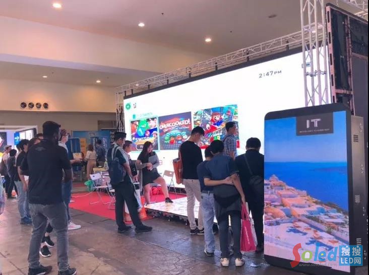 橫跨整個(gè)展位的舞臺(tái)租賃屏,色彩艷麗、張揚(yáng)大氣,具備很強(qiáng)的觀賞性。人屏互動(dòng)打破傳統(tǒng)游戲限制,視野開闊,讓受眾充滿了參與感和親切感,吸引參展觀眾流連忘返。