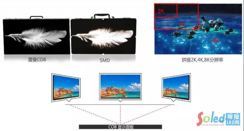 雷曼光電小間距COB高清顯示面板采用COB(Chip On Board)的形式,即將LED裸晶芯片用導電膠(R)或絕緣膠(G、B)固定在PCB的燈位焊盤上,然后用超聲波焊接技術對LED 芯片進行導電功能引線焊合,最后用環(huán)氧樹脂膠或硅樹脂對燈位進行包封,保護好LED 發(fā)光芯片和引線。COB 封裝工藝整合了LED 顯示產(chǎn)業(yè)鏈的中、下游企業(yè)的生產(chǎn)流程,在一個企業(yè)內(nèi)部就可完成從LED 燈珠的封裝到LED 顯示屏的制作過程,節(jié)約了生產(chǎn)組織成本,中間環(huán)節(jié)的包裝和物流成本、質(zhì)量控制成本等。該產(chǎn)品是雷曼光電結(jié)合先進LED 集成封裝技術、LED 智能顯示控制技術及一系列工藝突破,自主研發(fā)的高端LED 顯示產(chǎn)品,具有高密度、高可靠性、高對比度、高灰度、高分辨率、高防護等級、低使用成本等優(yōu)點,是公司注重科技創(chuàng)新,厚積薄發(fā)的創(chuàng)新成果,適合廣泛應用于監(jiān)控中心、指揮中心、會議顯示、商用顯示等眾多大屏幕高清顯示領域。
