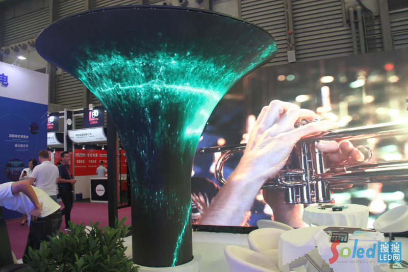 路東科技此次帶來了美輪美奐的透明屏和奪人眼球的喇叭屏,引得參展的眾人連聲稱贊。