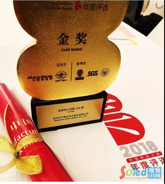 2018中國制造之美頒獎(jiǎng)—齊普光電C-Pad系列小間距產(chǎn)品獲金獎(jiǎng)