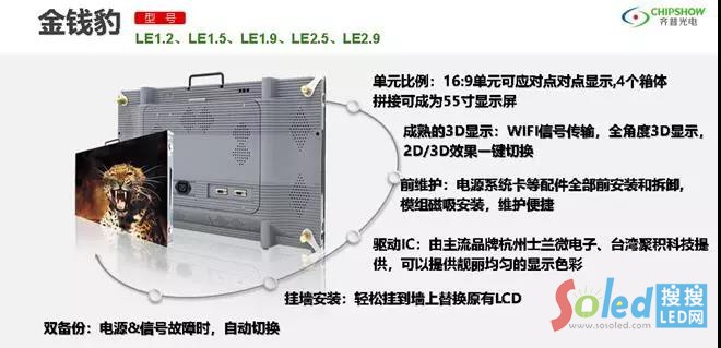 齊普光電在高清顯示方面持續(xù)進(jìn)行研發(fā)投入,金錢豹小間距產(chǎn)品在推出后已經(jīng)得到了廣泛的演藝行業(yè)、系統(tǒng)集成行業(yè)的認(rèn)可。