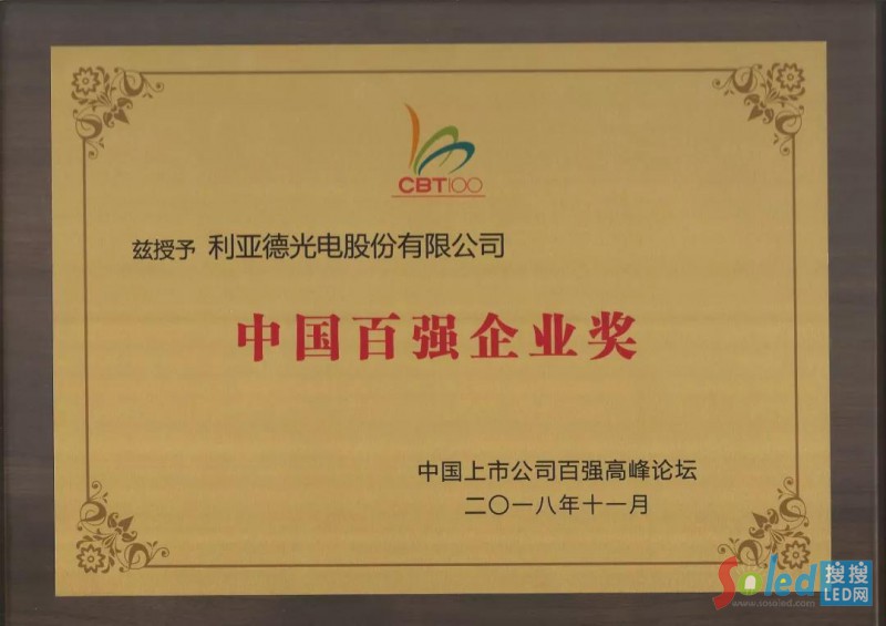 利亞德榮獲“中國百強(qiáng)企業(yè)獎(jiǎng)”