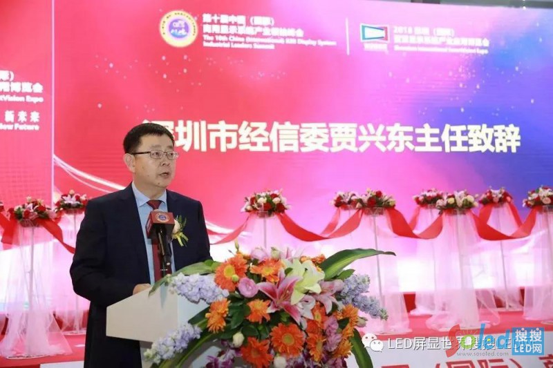 深圳市經(jīng)濟(jì)貿(mào)易和信息化委員會賈興東主任為本次大會致辭致開幕辭,深圳商顯產(chǎn)促會會長郭德軒先生致辭。