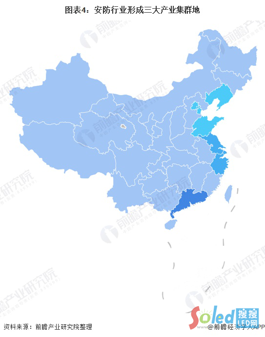 經(jīng)過(guò)長(zhǎng)期發(fā)展,目前我國(guó)智能安防在傳統(tǒng)安防行業(yè)發(fā)展地域代表性的基礎(chǔ)上形成了以電子智能安防產(chǎn)品生產(chǎn)企業(yè)聚集為主要特征的“珠三角”地區(qū)、以高新技術(shù)和外資企業(yè)聚集為主要特征的“長(zhǎng)三角”地區(qū),以及以集成應(yīng)用、軟件、服務(wù)企業(yè)聚集為主要特征的“環(huán)渤海”地區(qū)三大產(chǎn)業(yè)集群,占據(jù)了我國(guó)安防產(chǎn)業(yè)約2/3以上的份額。
