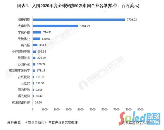 根據(jù)全球知名的科技媒體Automation Security《安全自動化》發(fā)布的2020年度全球安防50強榜單。有四家中國企業(yè)入選TOP10,分別為?低、大華股份、宇視科技、天地偉業(yè)。?低暭按笕A股份仍以77億美元和38億美元的營收數(shù)據(jù)穩(wěn)居全球第 一與第二的位置。