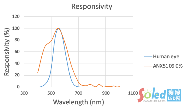 光譜感光度響應(yīng)波段范圍在(400~750)nm之間,可完全屏蔽紅外和紫外光的干擾;