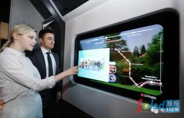 ‘地鐵展區(qū)’可以看到采用高透明度的透明OLED作為地鐵窗戶,不僅可以讓乘客享受外部美麗的風(fēng)景,還可以掌握地鐵路線以及各地區(qū)信息。