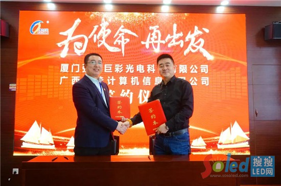 近年來,LED大顯示迅猛發(fā)展,已成為新型顯示主流產(chǎn)品!在新基建、智慧城市建設(shè)等賦能下,LED顯示屏對(duì)拼接、投影等傳統(tǒng)顯示替代增速,迸發(fā)強(qiáng)大發(fā)展勢能,從數(shù)百億向萬億市場躍進(jìn),蘊(yùn)含巨大商機(jī),吸引了大批有志之士攜手共拓LED大顯示版圖!近日,強(qiáng)力巨彩省級(jí)品牌運(yùn)營商體系就有新鮮血液加入,分別是來自IT領(lǐng)域廣西頂佳計(jì)算機(jī)信息有限公司和來自智慧燈桿屏領(lǐng)域廣東正翔照明科技有限公司。