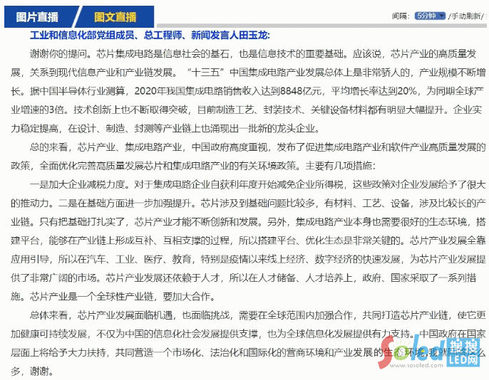 3月1日,國(guó)務(wù)院新聞辦召開(kāi)新聞發(fā)布會(huì),工業(yè)和信息化部總工程師、新聞發(fā)言人田玉龍表示,“十三五”中國(guó)集成電路產(chǎn)業(yè)規(guī)模不斷增長(zhǎng)。據(jù)測(cè)算,2020年我國(guó)集成電路銷售收入達(dá)到8848億元,平均增長(zhǎng)率達(dá)到20%,為同期全球產(chǎn)業(yè)增速的3倍。技術(shù)創(chuàng)新上不斷取得突破,目前制造工藝、封裝技術(shù)、關(guān)鍵設(shè)備材料都有明顯大幅提升。企業(yè)實(shí)力穩(wěn)定提高,在設(shè)計(jì)、制造、封測(cè)等產(chǎn)業(yè)鏈上涌現(xiàn)出一批新的龍頭企業(yè)。