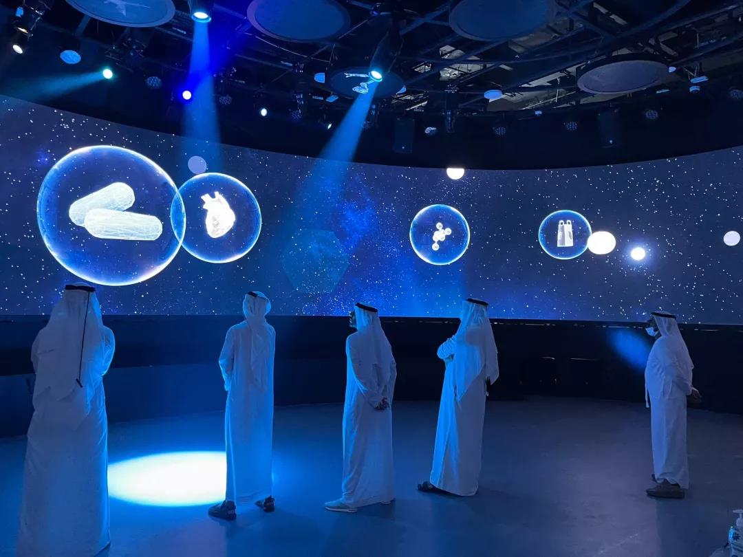 來到阿聯(lián)國家石油公司展館,更能享受創(chuàng)新和完全沉浸式的文化體驗(yàn)。整片場館以“再想象能源”為主題,透過近200㎡LED大屏,采用可持續(xù)驅(qū)動(dòng)的元素,讓游客用感官體驗(yàn)、動(dòng)感裝置和互動(dòng)投影來感受能源,也為Enoc集團(tuán)創(chuàng)造了一個(gè)展現(xiàn)價(jià)值的理想平臺(tái)。