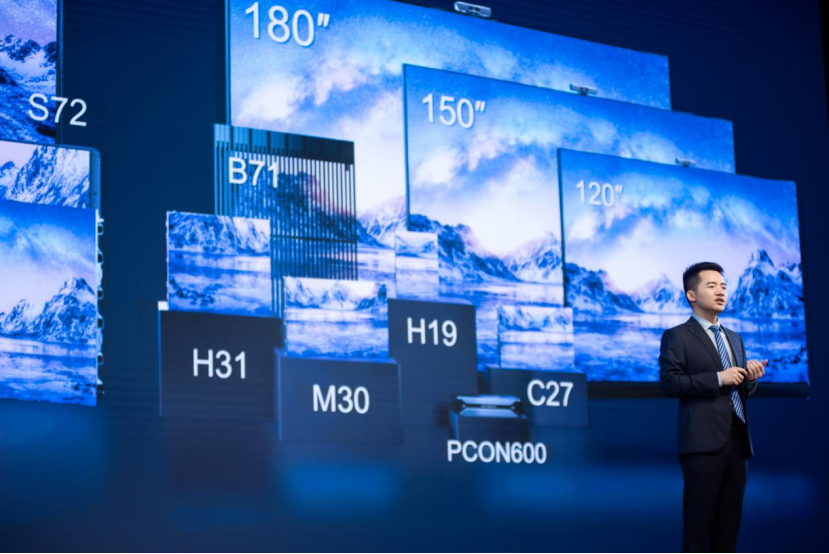 針對(duì)數(shù)字化轉(zhuǎn)型下的復(fù)雜需求,QSTECH青松于發(fā)布會(huì)上推出了全新的LED一體機(jī),整機(jī)配件為遙控器、攝像頭、無線傳屏器、移動(dòng)支架及維護(hù)工具,屏幕覆蓋120英寸—220英寸,支持會(huì)議、演講、展廳、報(bào)告廳等多重場(chǎng)景。