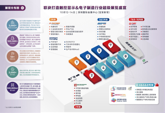 深圳國際全觸與顯示展(C-TOUCH & DISPLAY SHENZHEN)作為智慧觸控和新型顯示行業(yè)的風(fēng)向標(biāo)展會,砥礪十五載,重裝出發(fā)。本屆展會將聯(lián)合中國汽車工業(yè)技術(shù)展、深圳商用顯示技術(shù)展以及NEPCON ASIA亞洲電子生產(chǎn)設(shè)備暨微電子工業(yè)展等同期舉辦。超10萬平方米的超級展覽盛宴,規(guī)?涨,預(yù)計(jì)吸引100,000名行業(yè)優(yōu)質(zhì)買家到場。