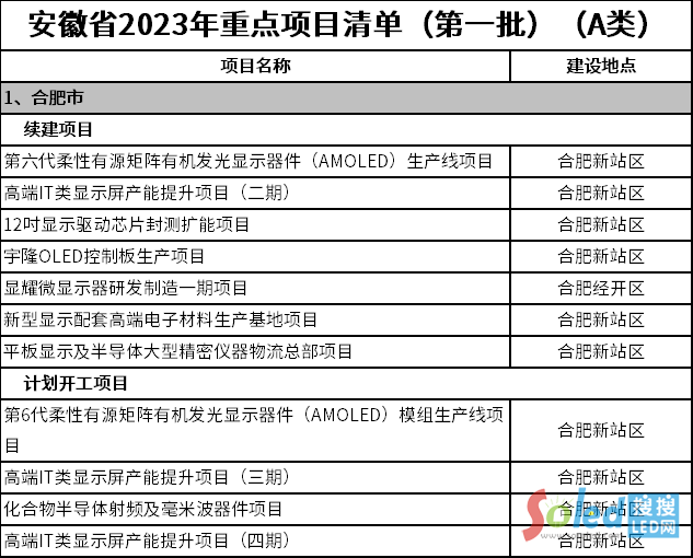 A類中,續(xù)建項(xiàng)目包括“臻芯年產(chǎn)1000萬(套)LED封裝項(xiàng)目”、“青鳥消防應(yīng)急照明生產(chǎn)基地項(xiàng)目”、“年產(chǎn)兩億顆LED照明芯片封測(cè)項(xiàng)目”、“芯視佳硅基OLED微顯示器生產(chǎn)”等。
