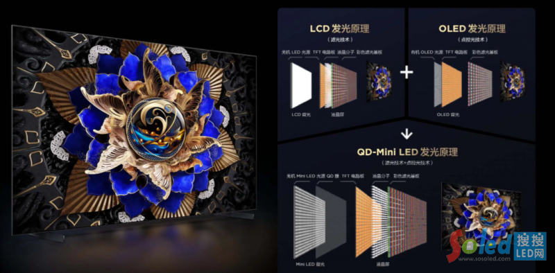 據(jù)了解,TCL QD-Mini LED 兼具了 LCD 與 OLED的優(yōu)勢,將傳統(tǒng)面光源升級為像素級點光源,采用 “光學核武器”的百微米級高光效Mini LED發(fā)光芯片和行業(yè)首創(chuàng)廣角均光透鏡,在亮度、對比度、動態(tài)范圍等畫質(zhì)關鍵維度上都大幅度提升,實現(xiàn)不灼屏,更絢麗。