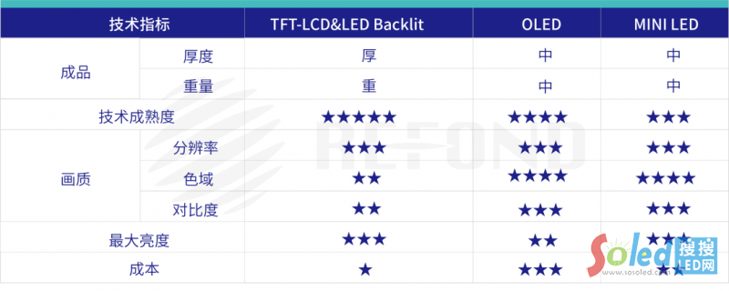 相比傳統(tǒng)LCD,Mini LED產(chǎn)品一般具有局域調(diào)光功能,具有超高亮度、使用壽命長、高對比度、HDR寬動態(tài)顯示范圍、節(jié)能等諸多優(yōu)點,高端Mini LED顯示畫面媲美OLED,具有成本低、應用廣的特點,且沒有OLED壽命、殘影等隱患。