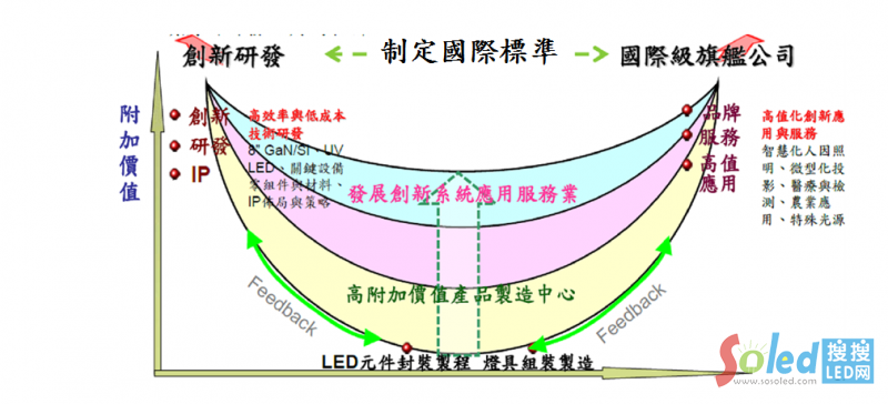 .那么怎么獲取利潤(rùn)呢:創(chuàng)造標(biāo)準(zhǔn),或及早與即將出現(xiàn)的標(biāo)準(zhǔn)結(jié)盟,或者致力于創(chuàng)造下一次的標(biāo)準(zhǔn)化。比如說(shuō)盡快涉足smart lighting,smart lighting是未來(lái)的一個(gè)趨勢(shì),或者像ZHAGA ,它在提一個(gè)COB標(biāo)準(zhǔn)的鍵面。我們做制造的企業(yè),應(yīng)該想辦法,提高產(chǎn)品的附加價(jià)值,或者發(fā)展系統(tǒng)的應(yīng)用服務(wù),在這里面有沒(méi)有辦法來(lái)制造出一些標(biāo)準(zhǔn),F(xiàn)在沒(méi)有標(biāo)準(zhǔn),產(chǎn)品參差不齊。LED是一個(gè)很好的照明產(chǎn)品,大家可以好好的做些思考。