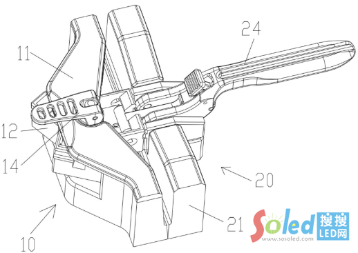 該專利摘要顯示,本發(fā)明提出一種用于組裝LED顯示屏的搭扣鎖,包括第一鎖體和第二鎖體,所述第一鎖體包括第一主體和能夠相對(duì)于所述第一主體轉(zhuǎn)動(dòng)的角度架,所述角度架上設(shè)有至少兩個(gè)傾斜角度不同的第一定位面,所述第二鎖體包括第二主體和定位部,所述定位部與所述第二主體固定連接,所述定位部一端設(shè)有第二定位面,所述第二定位面與所述第一定位面相吻合;所述第一定位面為三個(gè),三個(gè)所述第一定位面的傾斜角度分別為5度、0度、+5度,將所述第一鎖體、所述第二鎖體分別安裝到相鄰的兩個(gè)LED顯示屏上,拼合時(shí),根據(jù)LED顯示屏的弧度來(lái)選擇所述第一定位面的傾斜角度,使所述第二定位面與所述第一定位面吻合即可調(diào)整相鄰的兩個(gè)LED顯示屏的弧度。