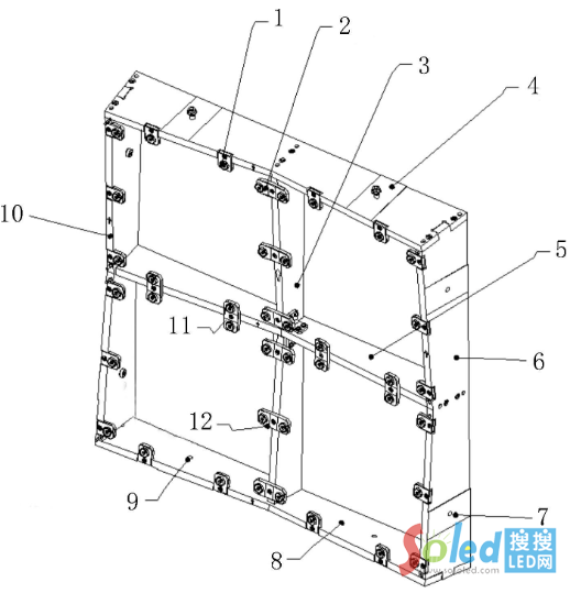 該專利摘要顯示,本申請(qǐng)涉及LED顯示技術(shù)領(lǐng)域,特別是涉及一種LED顯示屏箱體。一種LED顯示屏箱體,包括LED顯示模組,框架,電源盒,信號(hào)盒和頂部保護(hù)墊,若干所述LED顯示模組設(shè)置在所述框架的一面,所述電源盒和所述信號(hào)和設(shè)置在所述框架的另一面,所述頂部保護(hù)墊設(shè)置在所述框架的頂部;所述頂部保護(hù)墊包括保護(hù)墊和加強(qiáng)板,所述加強(qiáng)板固定在所述保護(hù)墊上,所述加強(qiáng)板包括鎖緊結(jié)構(gòu)和定位結(jié)構(gòu)。本實(shí)用新型通過(guò)將保護(hù)墊與金屬加強(qiáng)板結(jié)合成頂部保護(hù)墊,避免了其受熱膨脹發(fā)生形變的問(wèn)題,同時(shí)與框架無(wú)螺絲的固定方式使得頂部保護(hù)墊的拆卸簡(jiǎn)單,維護(hù)快速便捷。
