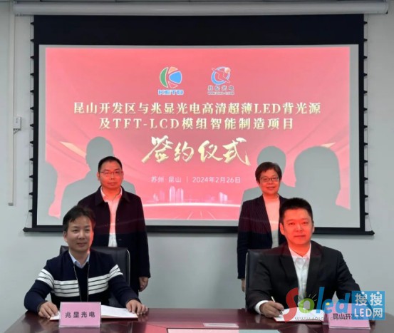 “昆山開發(fā)區(qū)發(fā)布”微信公眾號(hào)消息顯示,2月26日晚,江蘇昆山開發(fā)區(qū)與深圳市兆紀(jì)光電有限公司(以下簡稱“兆紀(jì)光電”)在深圳成功簽約,兆顯光電高清超薄LED背光源及TFT-LCD 模組智能制造項(xiàng)目落戶開發(fā)區(qū)。