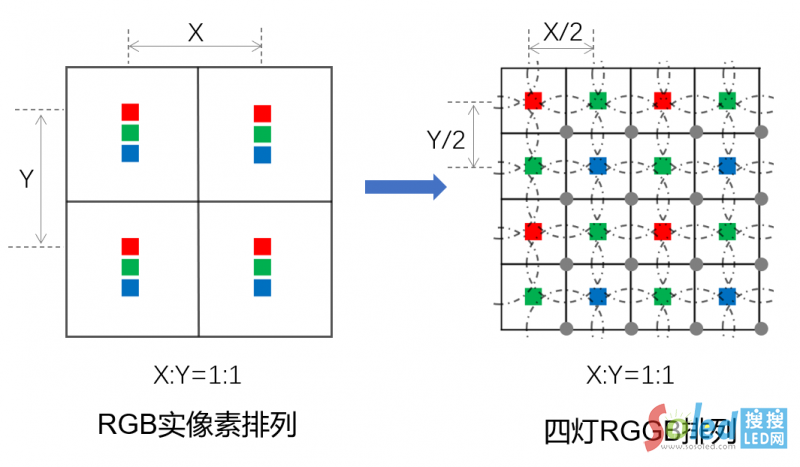△ 4燈RGGB排布可實(shí)現(xiàn)4倍的顯示分辨率提升 △