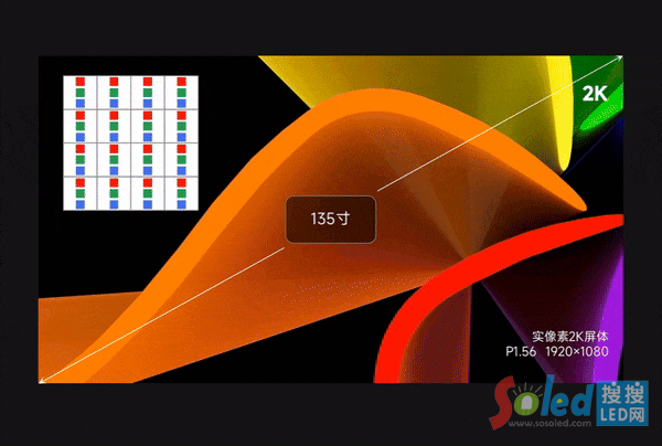 同尺寸下,改變子像素的排列方式及數(shù)量,采用動(dòng)態(tài)子像素渲染技術(shù)的屏體可以做到更小間距,更大分辨率的顯示。
