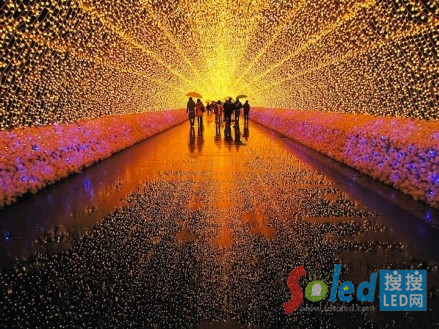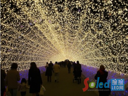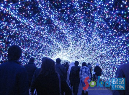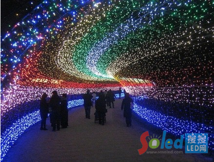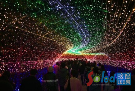 核心提示:日本的一個公園用700萬個LED燈做成了彩虹,極光和富士山。走在隧道里面簡直像走進了童話世界一樣,簡直美呆了!