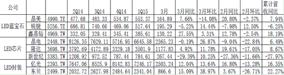 2015年3月臺(tái)灣LED廠商營(yíng)收數(shù)據(jù)