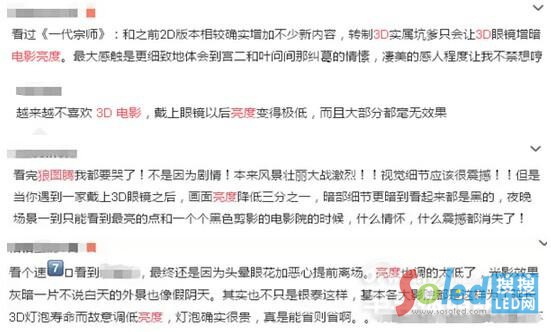 也無怪乎人們有意見了,亮度是影響3D觀影體驗非常重要的一個原因,放映時亮度過低不僅無法真實呈現創(chuàng)作者的創(chuàng)作意圖與畫面細節(jié),讓觀眾看不清畫面,同時還易產生頭昏腦漲等身體不適反應。不少業(yè)界人士都把造成“3D電影銀幕暗”的原因歸結于燈泡--電影院通過調低亮度,延長燈泡壽命,降低放映成本。但問題是,3D電影“好黑”、“昏暗”、“看不清”,能把過錯都歸咎于燈泡嗎?電影院放映技術人士表示,畫面變暗其實是多方面的原因。