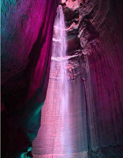 位于美國田納西州查特怒加市觀景峰地面以下1200英尺(366米)處的紅寶石瀑布是美國最大最深的地下瀑布之一,水流落差達145英尺(約44.2米)。在紅寶石瀑布所在的紅寶石巖洞中,充滿了各種奇異的天然巖洞景觀,而現(xiàn)在多彩的LED燈的運用則更讓巖洞充滿了奇幻的氛圍,讓人更加感嘆大自然的神奇!當不同色彩的LED燈光照向飛流直下的瀑布時,不禁會讓人感到置身于一個天外的世界一般。