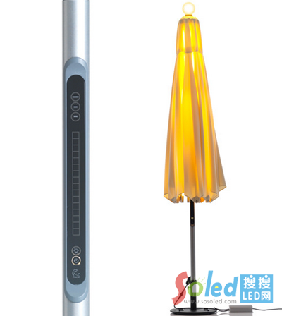 LED燈條結(jié)合陽傘,創(chuàng)造出傘下的明亮世界,LED燈泡不僅省電,也不會散發(fā)出惱人的熱度。